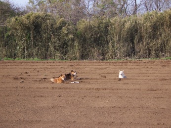 早朝自転車を走らせていると畑の中に座り込んでいる3匹。