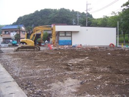 近くの(といっても2km先の)コンビニエンスストアが先月末に解体され今まで駐車場だったところに一回り大きくなって立て替えられている。写真手前の土の部分に旧店舗があったのだが掘り起こされ整えられて駐車場に変わろうとしている。
